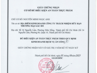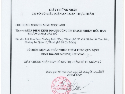 Chứng nhận ATVSTP của Gấc Đỏ